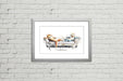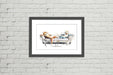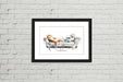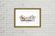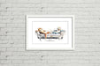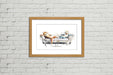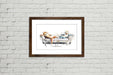 This contemporary watercolour print captures a relaxed gathering of lizards, combining playful character with clean, modern composition. The generous white space and balanced detail create a piece that feels effortlessly stylish — ideal for living rooms, home offices, kitchens or creative spaces.